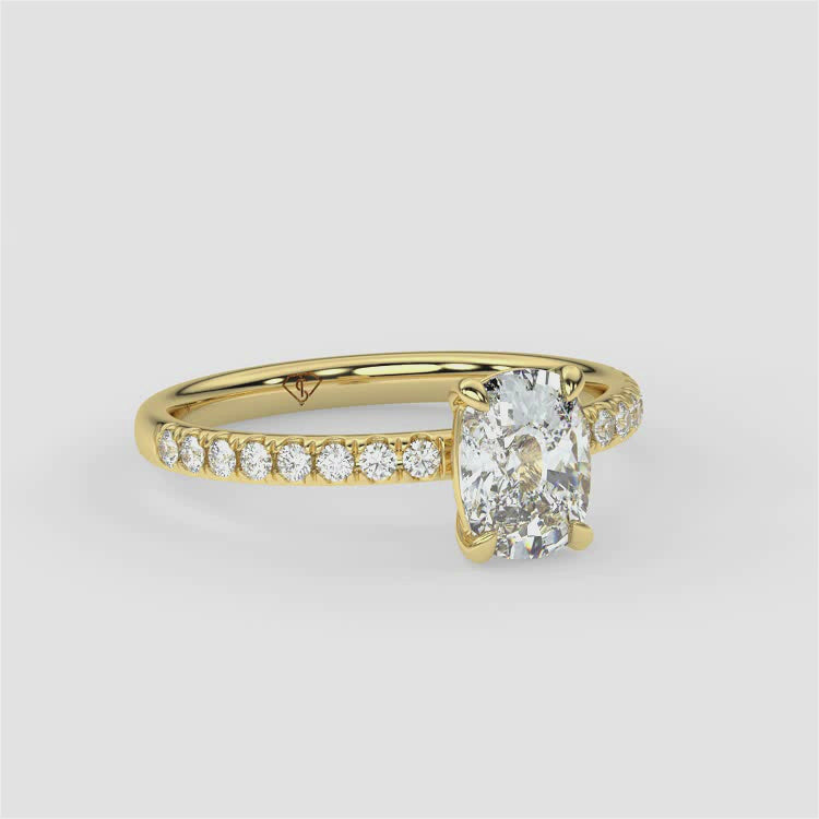 Elongated Cushion | 14k Yellow Gold | Classic Solitaire + Pavé Band