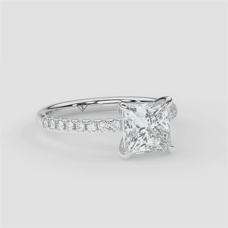 Princess | 9k White Gold | Classic Solitaire + Pavé Band