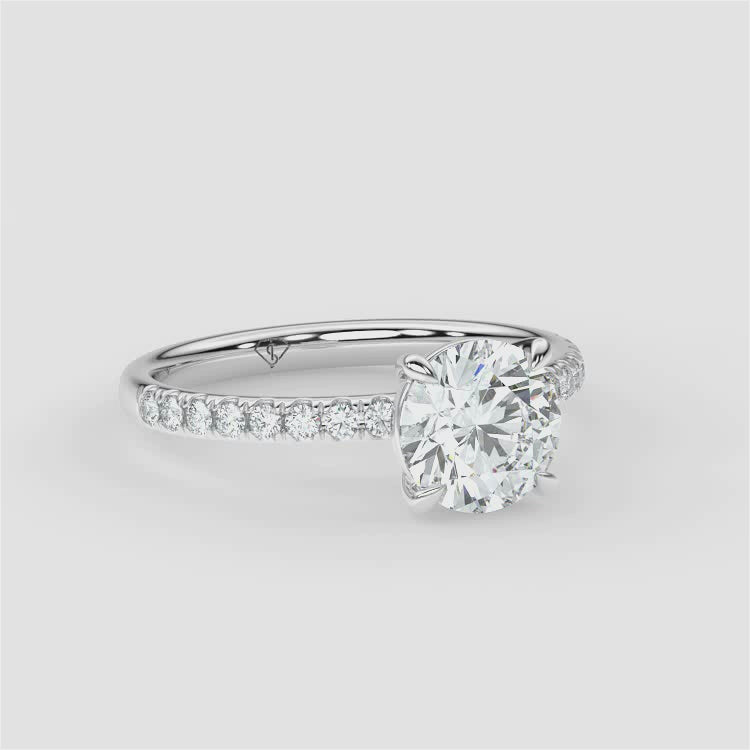 Round | 9k White Gold | Classic Solitaire + Pavé Band