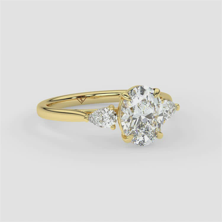 Oval | 18k Yellow Gold | Trilogy + Pear Side Stones