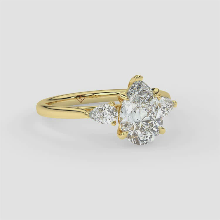 Pear | 9k Yellow Gold | Trilogy + Pear Side Stones