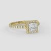 Princess | 14k Yellow Gold | Cathedral Solitaire + Halo + Pavé Band