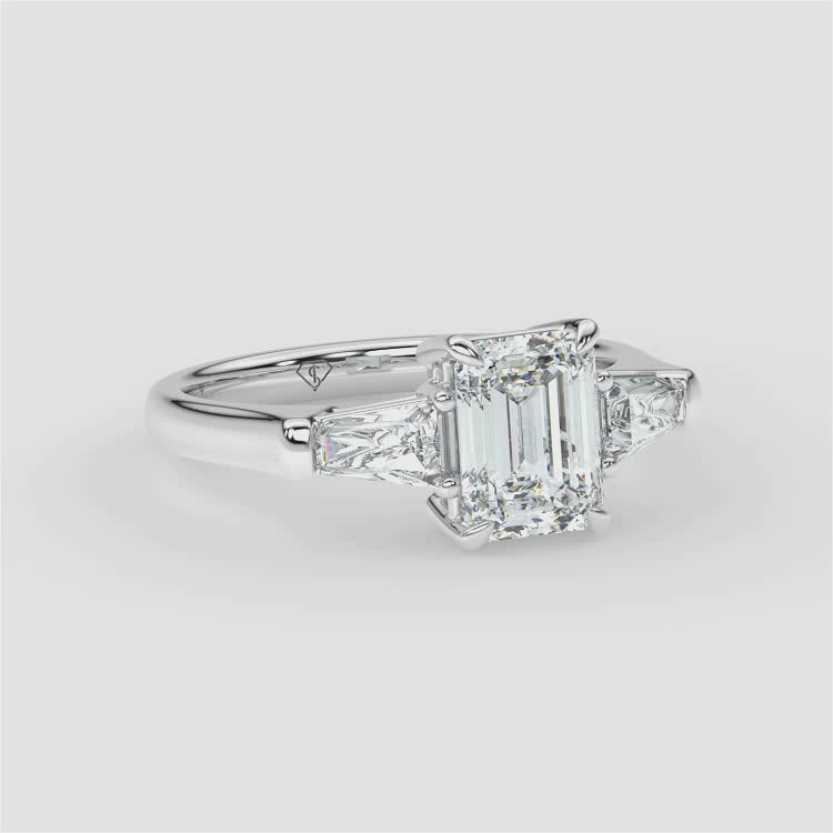 Emerald | 9k White Gold | Trilogy + Baguette Side Stones