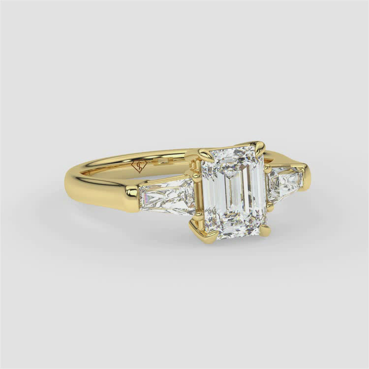 Emerald | 9k Yellow Gold | Trilogy + Baguette Side Stones